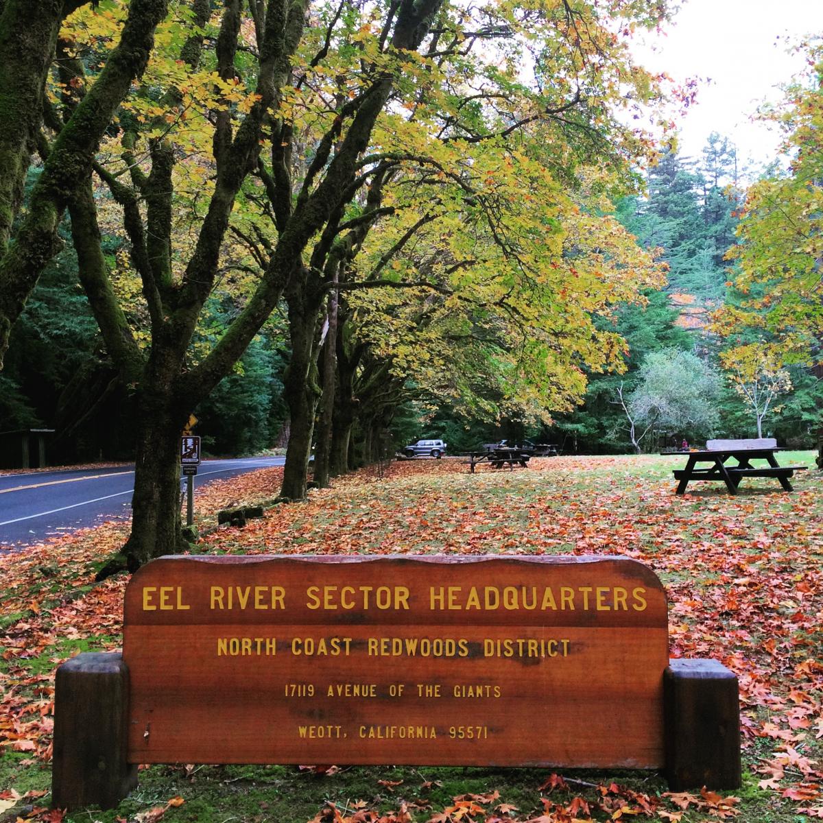 The Eel River Sector Headquarters and Humboldt Redwoods State Park is located along the Avenue of the Giants, approximately 2 miles south of Weott.