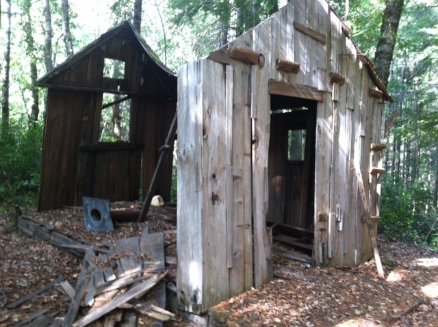 summer bridge is installed. The other location, available year round, is at the intersection of Mattole Road and Grasshopper Multi-Use Trail (Grasshopper Road). The hike from Big Trees is approximately 5 miles while the hike from Grasshoper is approximately 6.5 miles. The trail climbs about 1400 feet to an elevation of 1600 feet. The camp is located in the redwoods with old tie hacker cabins left behind from a logging operation.